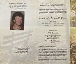 KV Rhein-Sieg e.V. Traueranzeige Traudl Remy